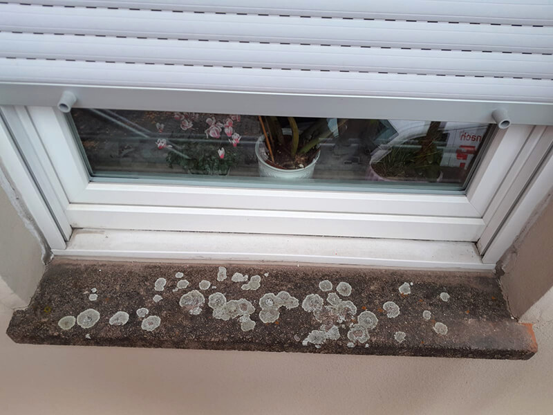 Bauteile aus Sandstein wie Sockel, Gewände und Stufen wurden gereinigt und von biogenem Befall befreit.