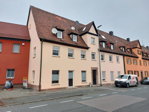 Die Neuverfugung bestand aus dem kraftschlüssigen Eintrag einer mineralischen Fugenmischung. Die Ausführung erfolgte nach Vorbild der typischen Fürther Schattenfuge als Flankendoppelverfugung mit schmaler, zurückversetzter Schattenverfugung. Die Endmodellage wurde durch „Abkratzen“ nach dezenter Antrocknung des Mörtels vorgenommen.